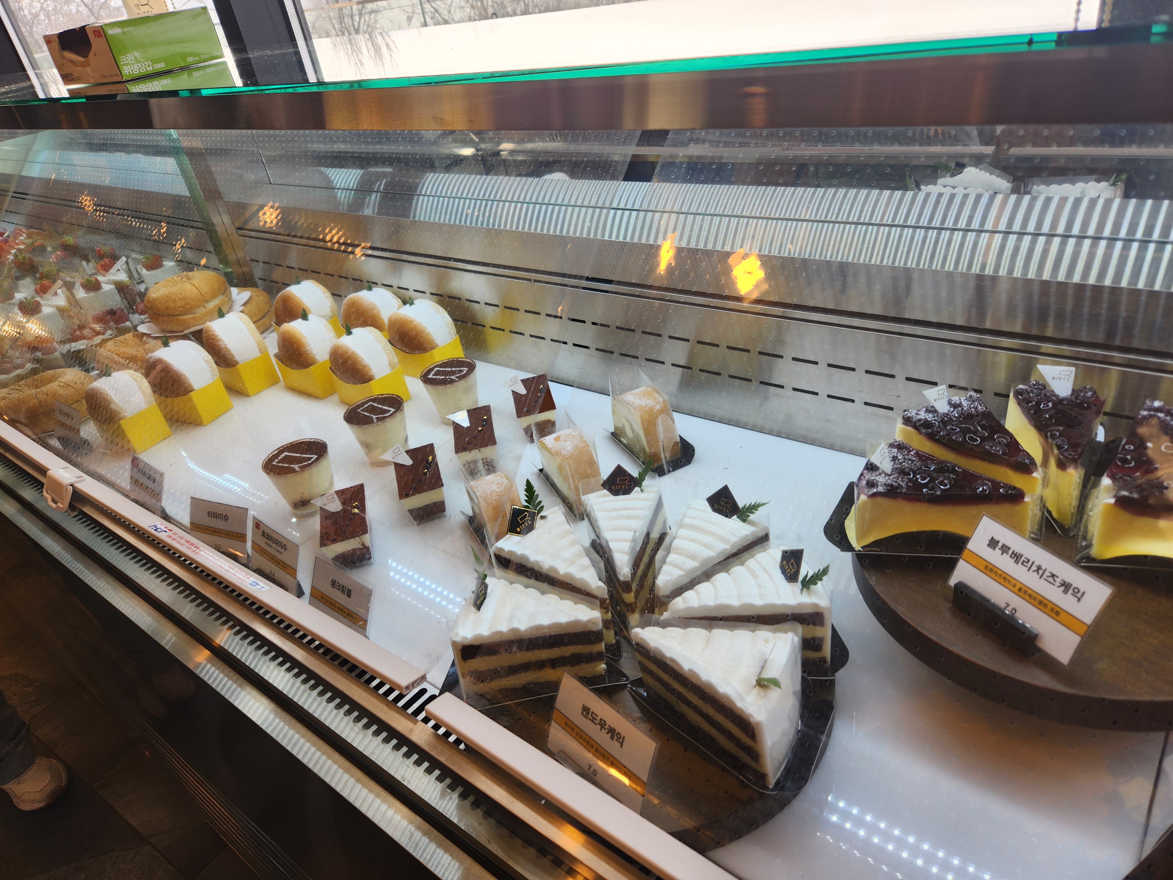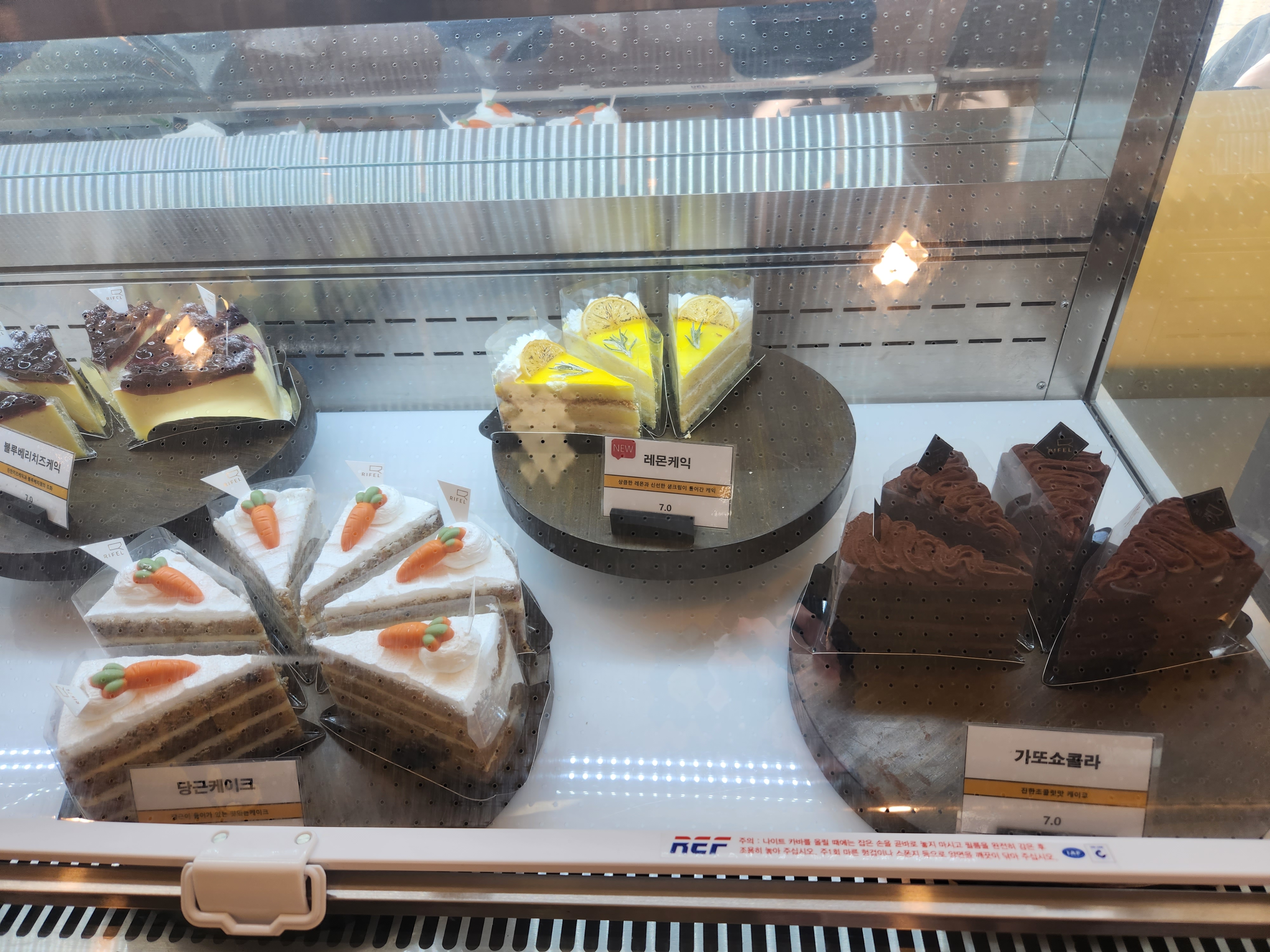 추가적으로 생크림폭탄으로 되어있는 이름모를 빵과, 티라미슈, 초코티라미슈, 생크림롤, 밴도우케이크, 블루베리치즈케이크, 당근케이크, 레몬케이크, 쇼콜라케이크 가 있었는데 진짜 메뉴도 다양하고 하나같이 다 맛있어 보였어요!!!