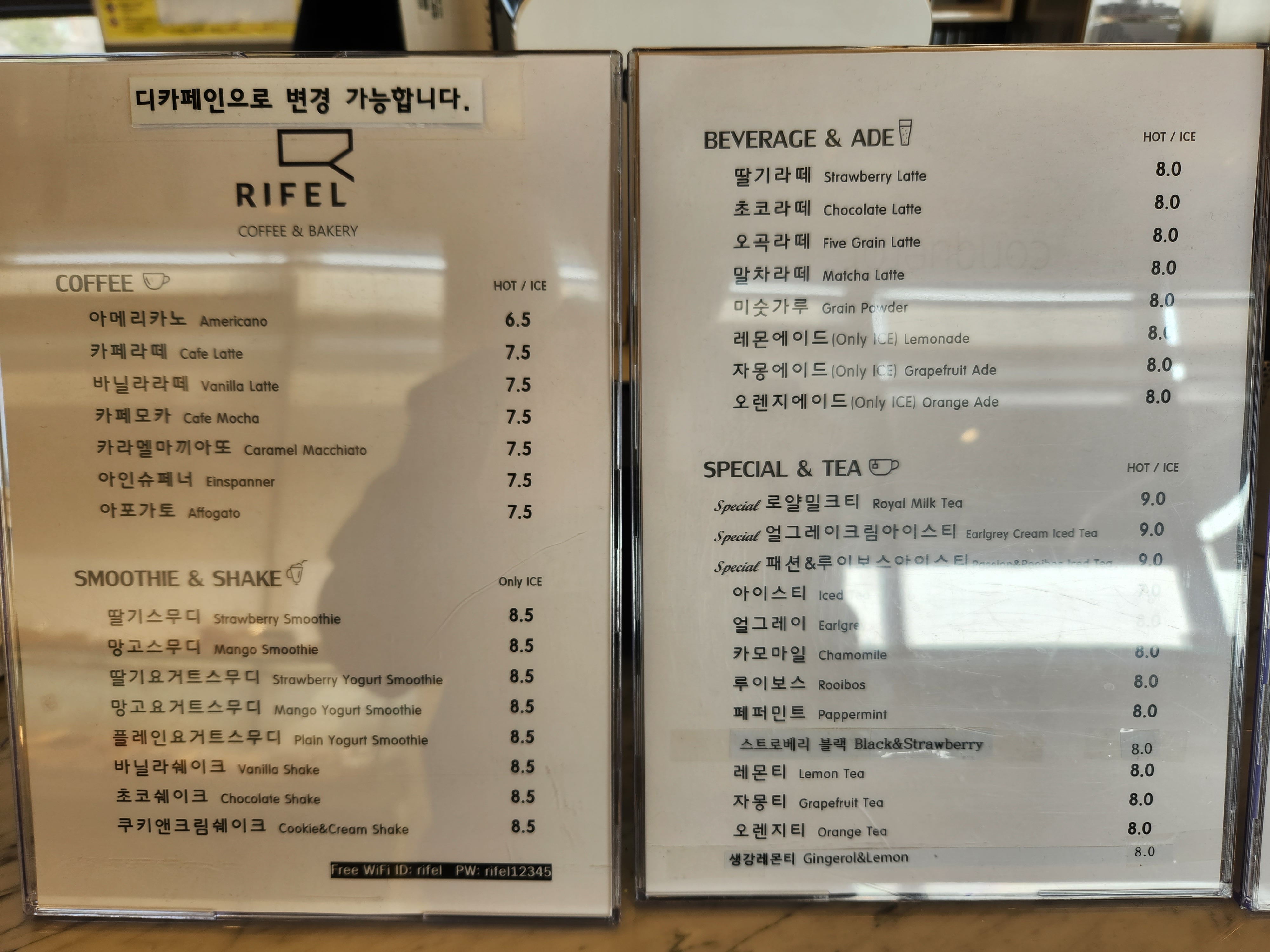 메뉴는 일반적인 카페랑 비슷했고, 미숫가루가 있는게 뭔가 신기했어요ㅋㅋㅋ