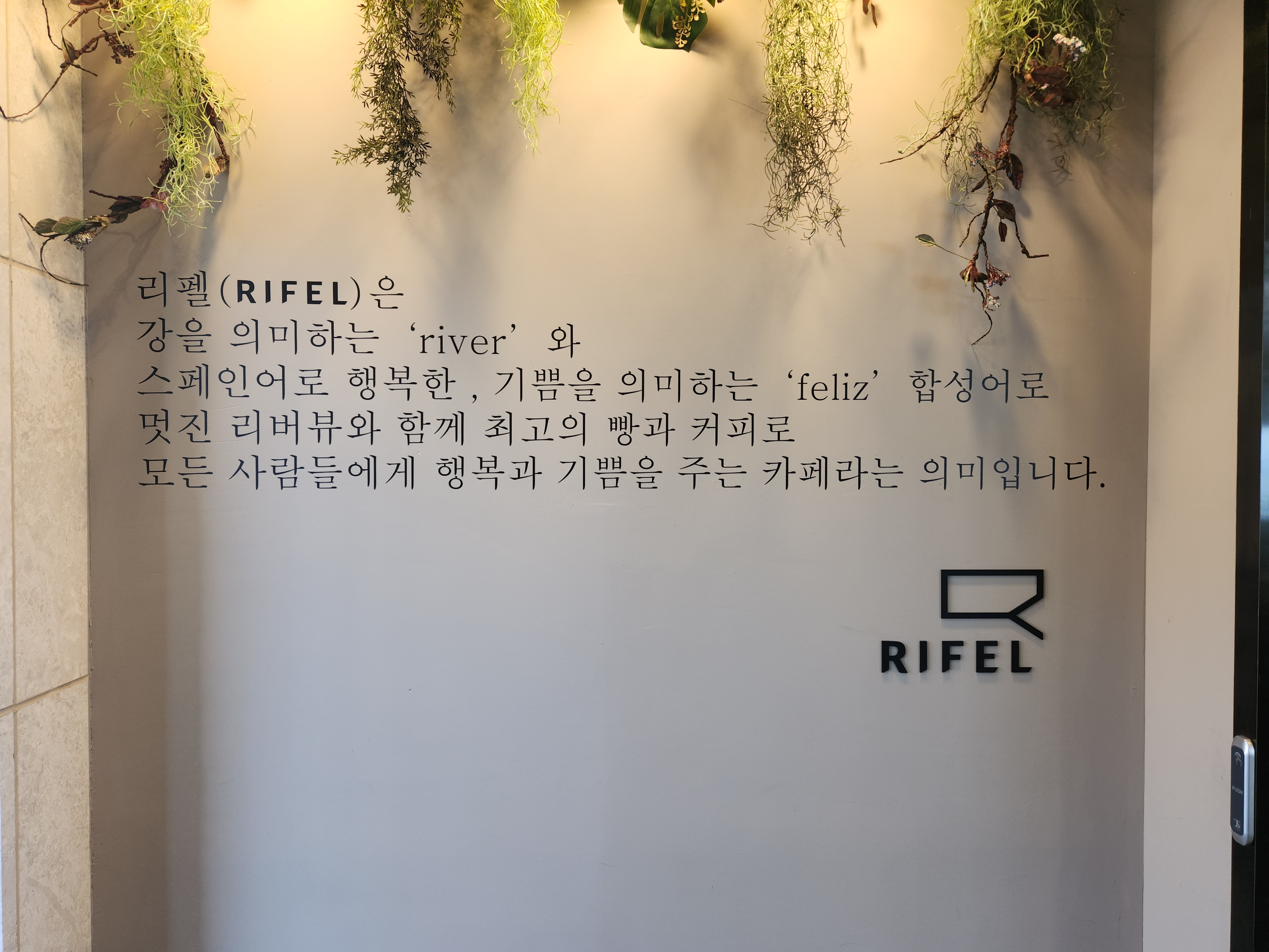 주차하고 건물에 중앙으로 올라오면 입구에 리펠(RIFEL) 카페 이름에 대한 설명이 적혀있는데, 생소한 단어여서 궁금했는데 어떤 뜻인지 적혀있더라구요!