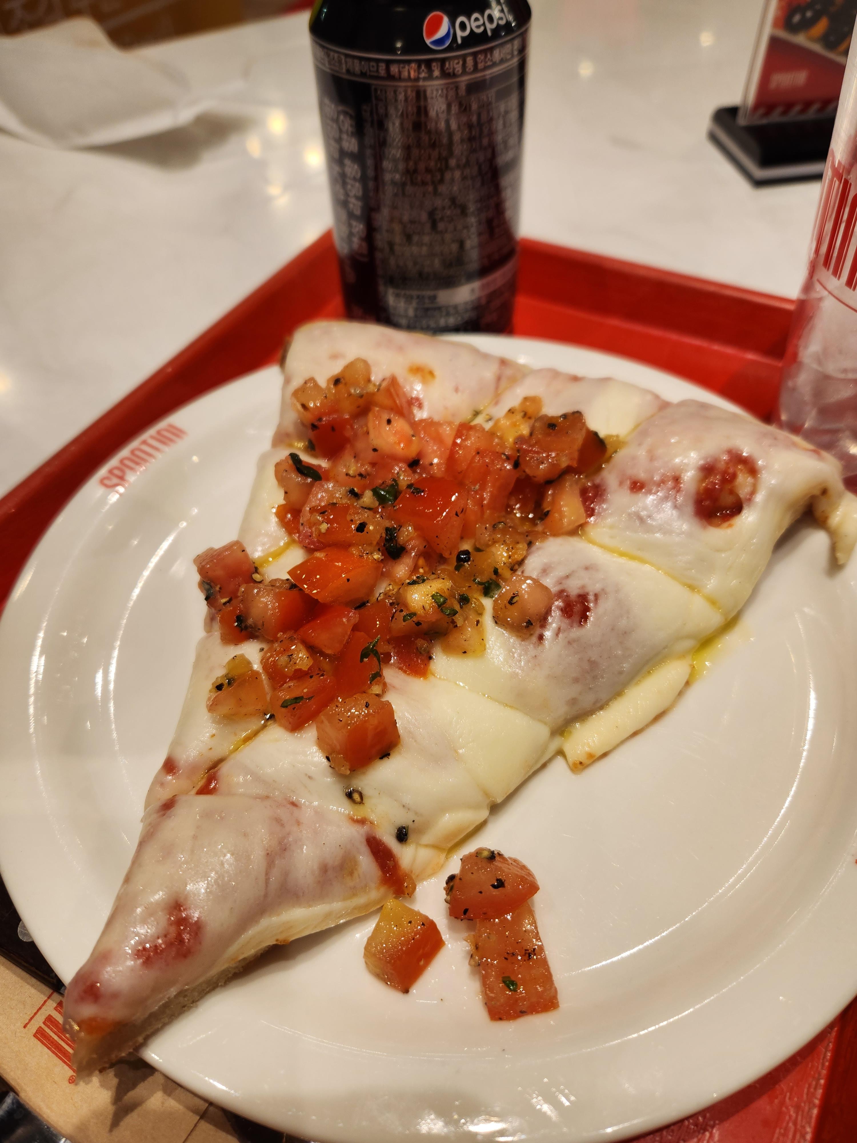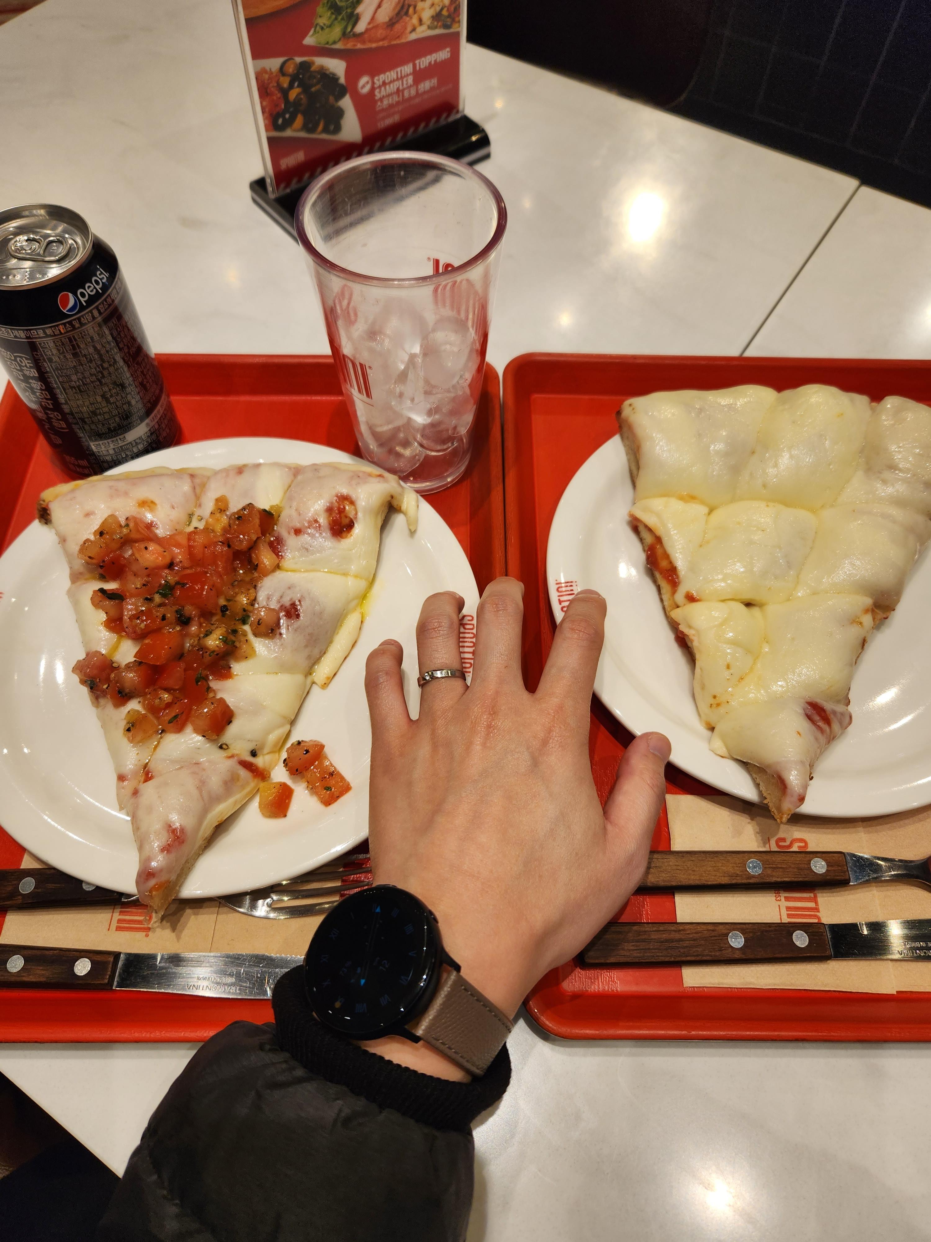 이렇게 세 조각을 해치운 결과, 아쉬운점은 메뉴는 다양했지만 결국 치즈피자의 토핑만 조금 다른 것 뿐이었고 토마토베이스말고 바질베이스나 다른 베이스도 있었다면 더 좋았을거 같다는 생각이에요!