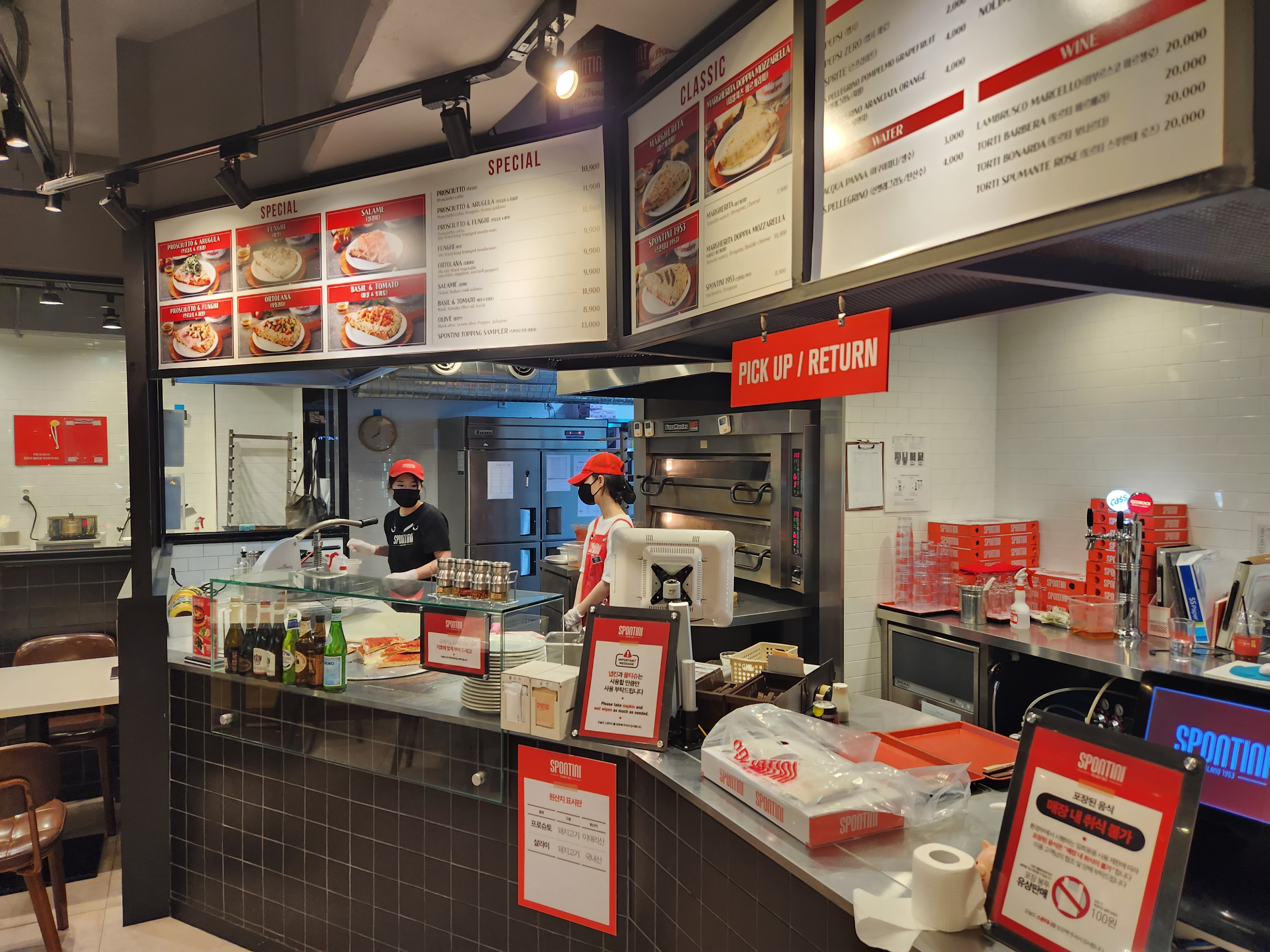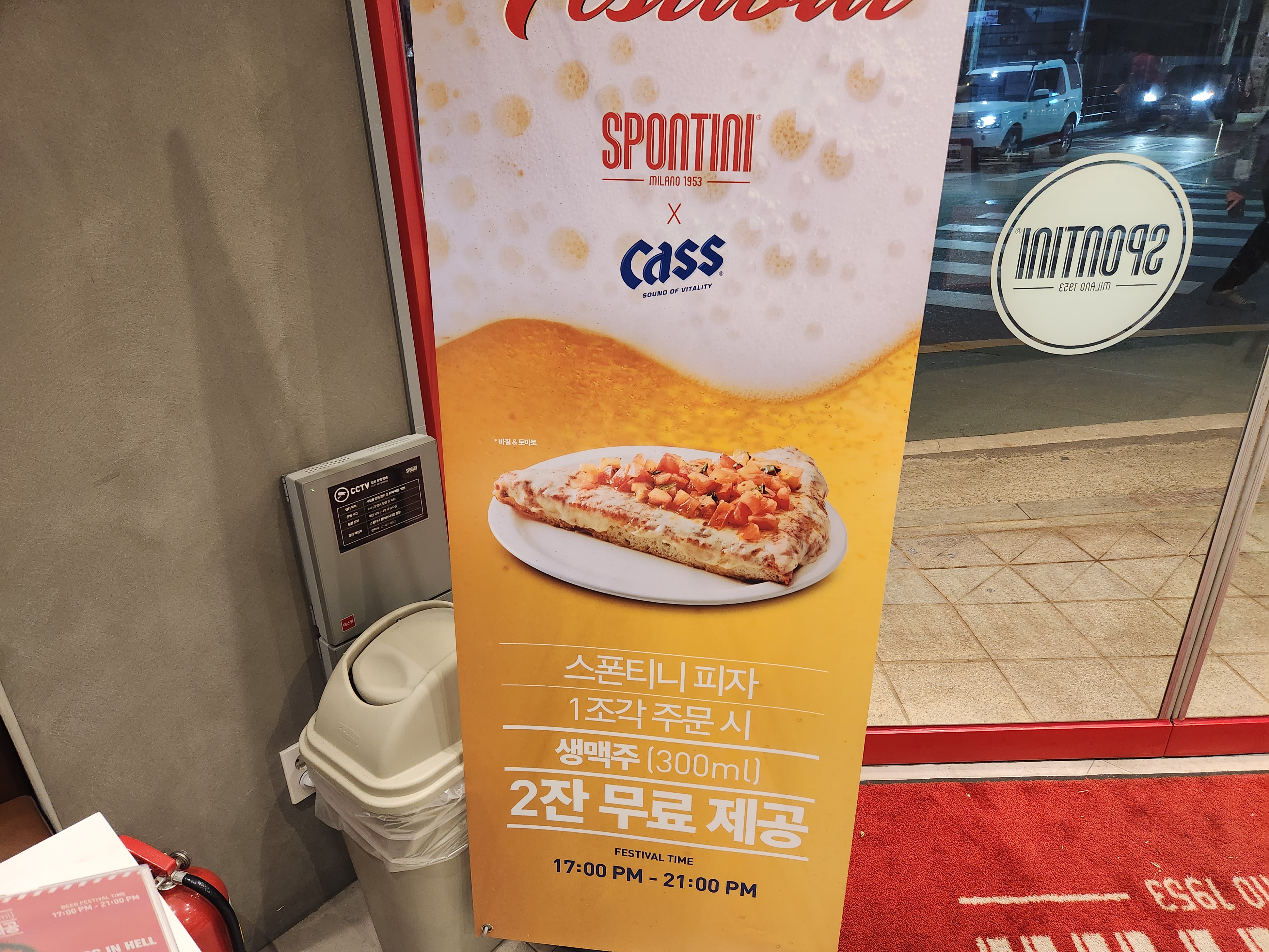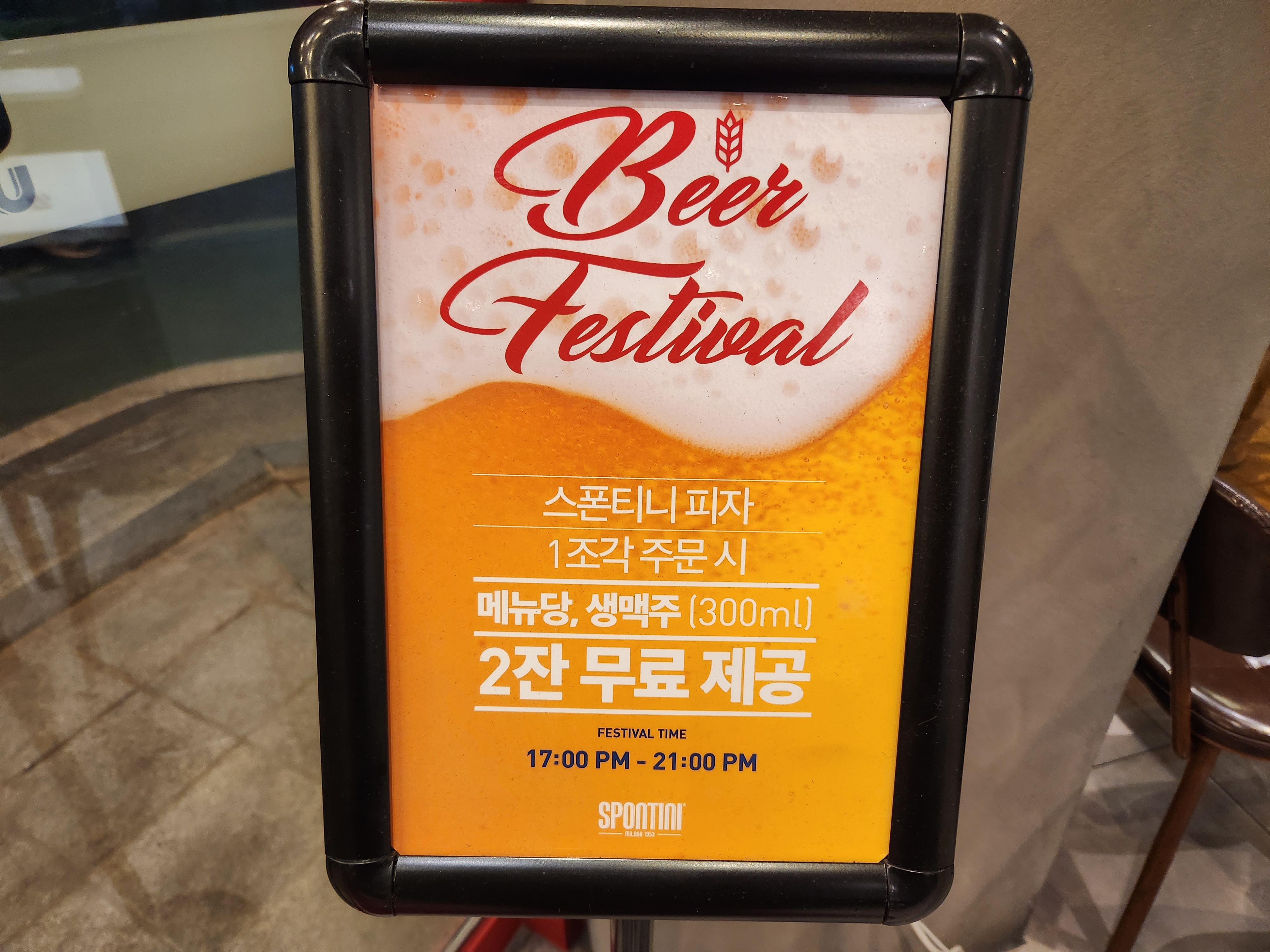23년 초에 방문했었는데, 스폰티니 피자 1조각 주문 시 생맥주 300ml 2잔 무료 제공 배너가 있었어요!