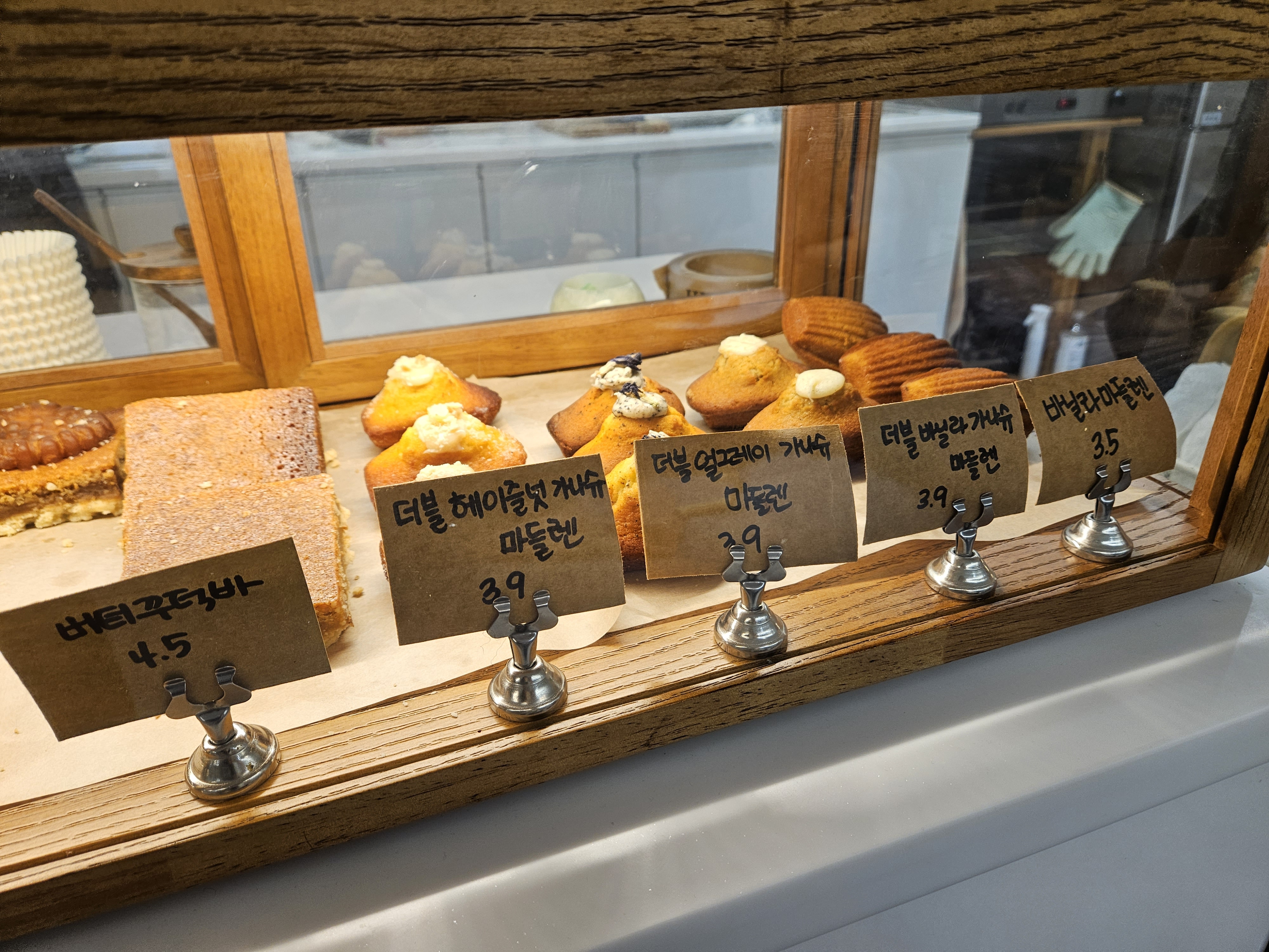 샌드위치, 베이글, 마들렌, 휘낭시에, 까눌레, 크로와상, 퀸아망 등등