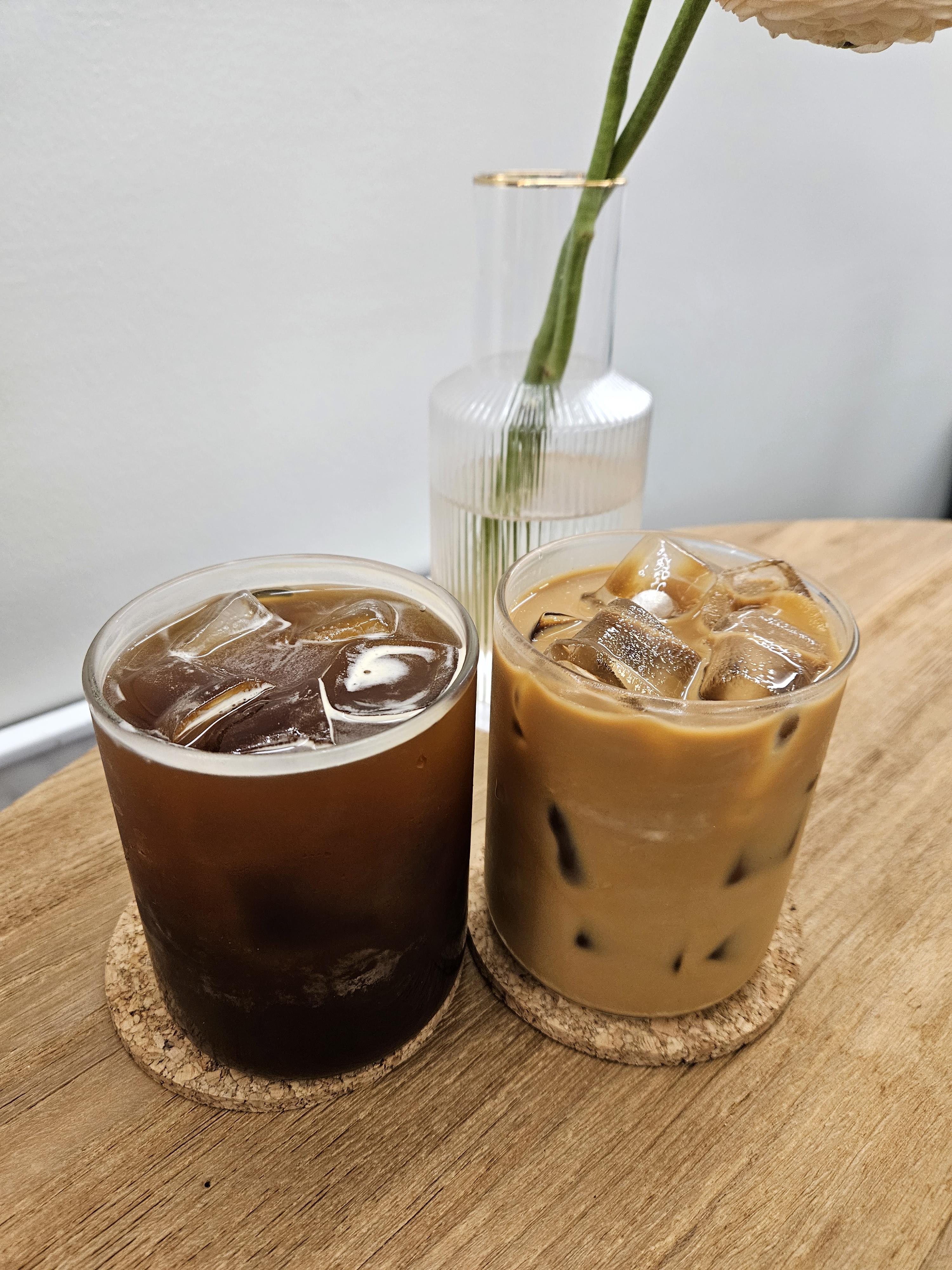 저희는 아메리카노, 오트밀라떼, 바닐라 까눌레, 돼지바 휘낭시에 이렇게 시켰습니다!