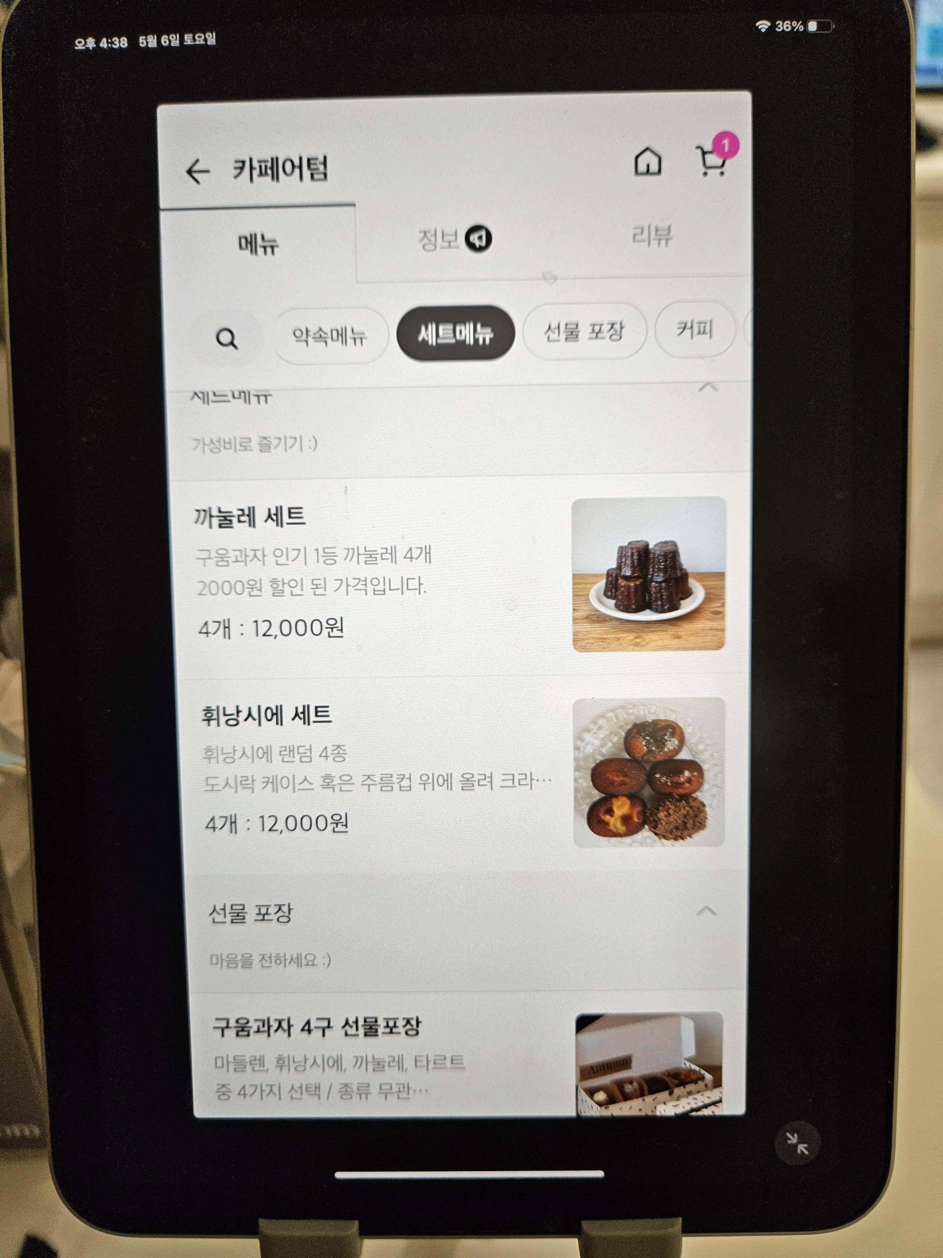 메뉴판은 태블릿으로 되어있는데 배민으로 켜져있더라구요!